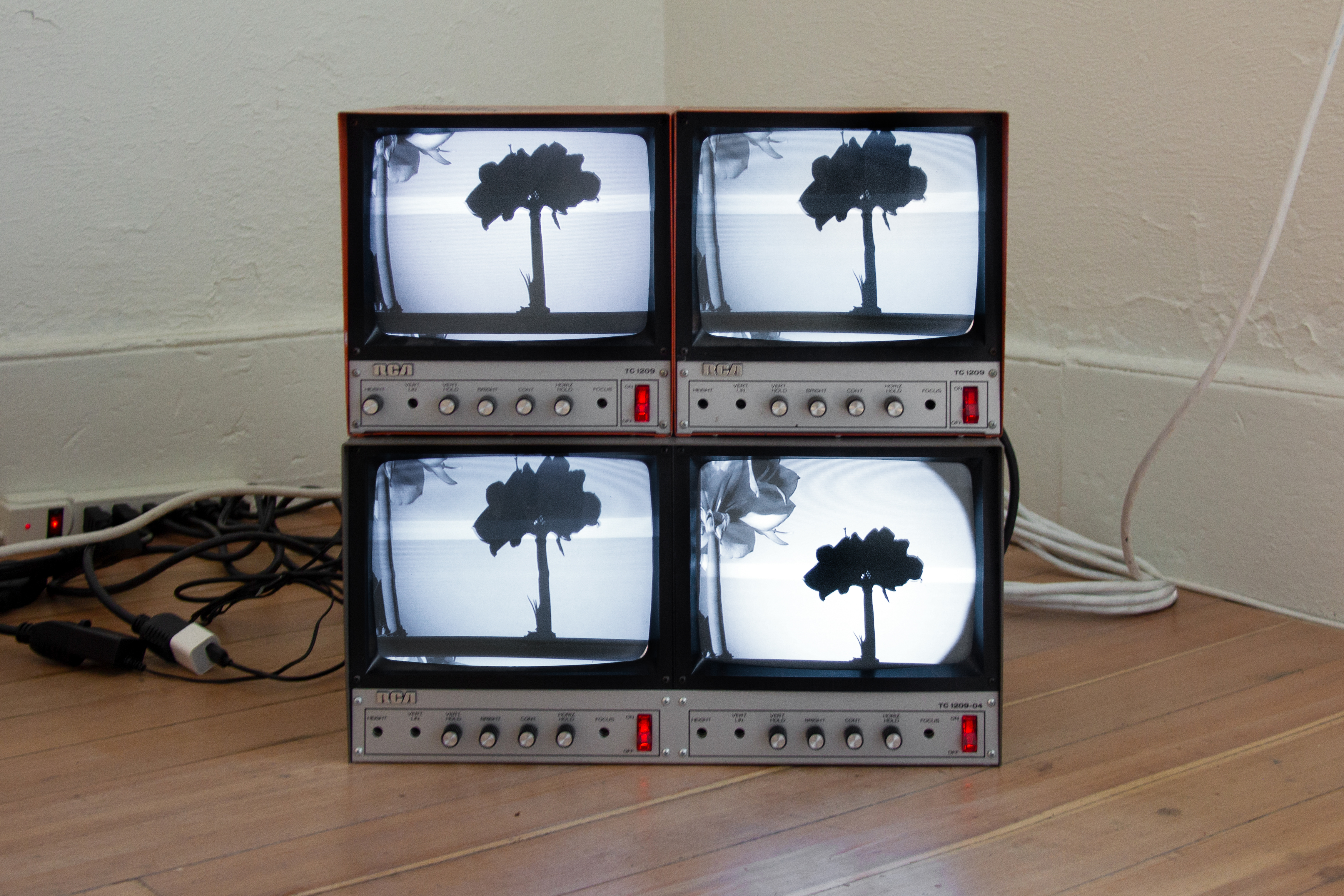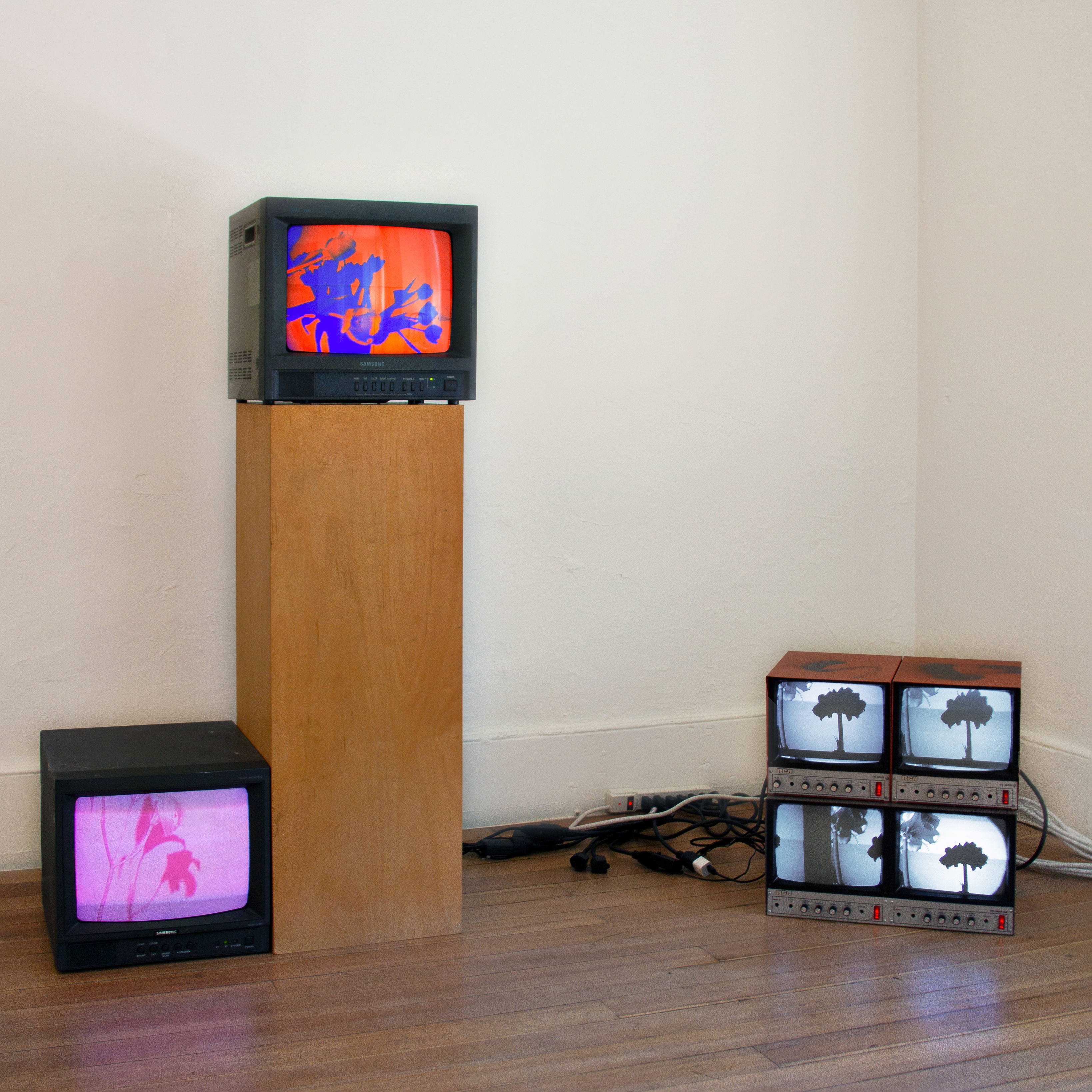 Anchoring the physical space of the gallery is an installation of another reanimated obsolete technology: an AV cart stacked with CRT TV monitors, functioning as much as sculptural objects as they do screens. This intervention draws a deliberate line between two distinct historical precedents: Edward Steichen’s 1936 exhibition of live delphiniums at the Museum of Modern Art—which famously collapsed the boundaries between horticulture, science, and fine art—and the video work of Nam June Paik, who subverted the passive consumption of television into a sculptural medium. By broadcasting six time-lapse videos of the shifting shadows of blooming flowers across these obsolete screens, the installation marries Steichen’s organic spectacle with Paik’s technological irreverence. The footage varies between black-and-white and color, establishing a direct dialogue with the material evolution of her two-dimensional work. More than a mere technical shift, this transition echoes the groundbreaking application of three-strip Technicolor in The Wizard of Oz. Frazier is drawn to the deliberate, radical threshold engineered by director Victor Fleming and cinematographer Harold Rosson, but feels a particular affinity with Natalie Kalmus. As the co-founder of the Technicolor company and the mandatory on-set "color supervisor," Kalmus dictated the color palettes, costumes, and set designs to ensure the chemical dye process of the film strips would register perfectly on screen. She meticulously controlled the physical environment to serve a demanding chemical one.