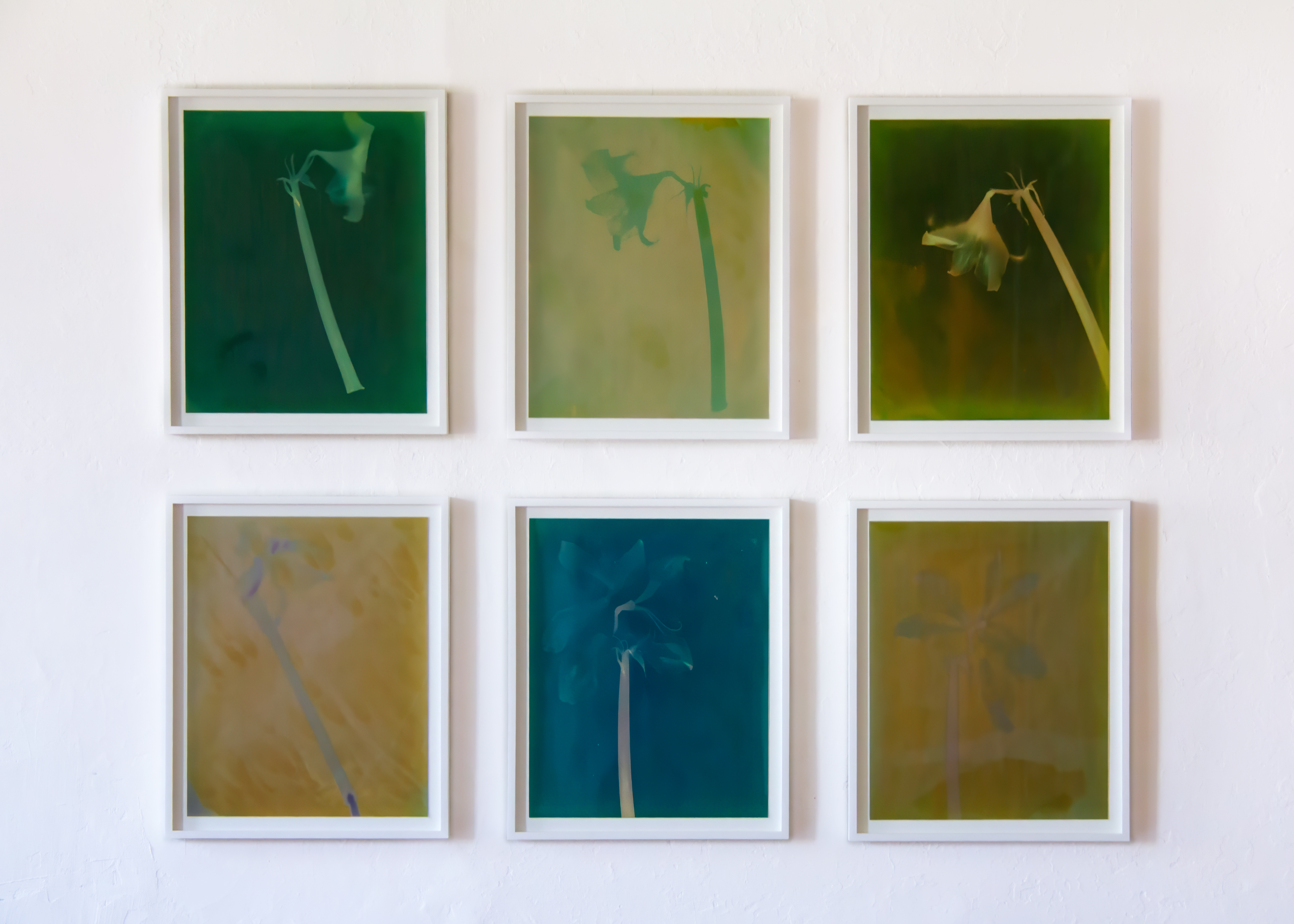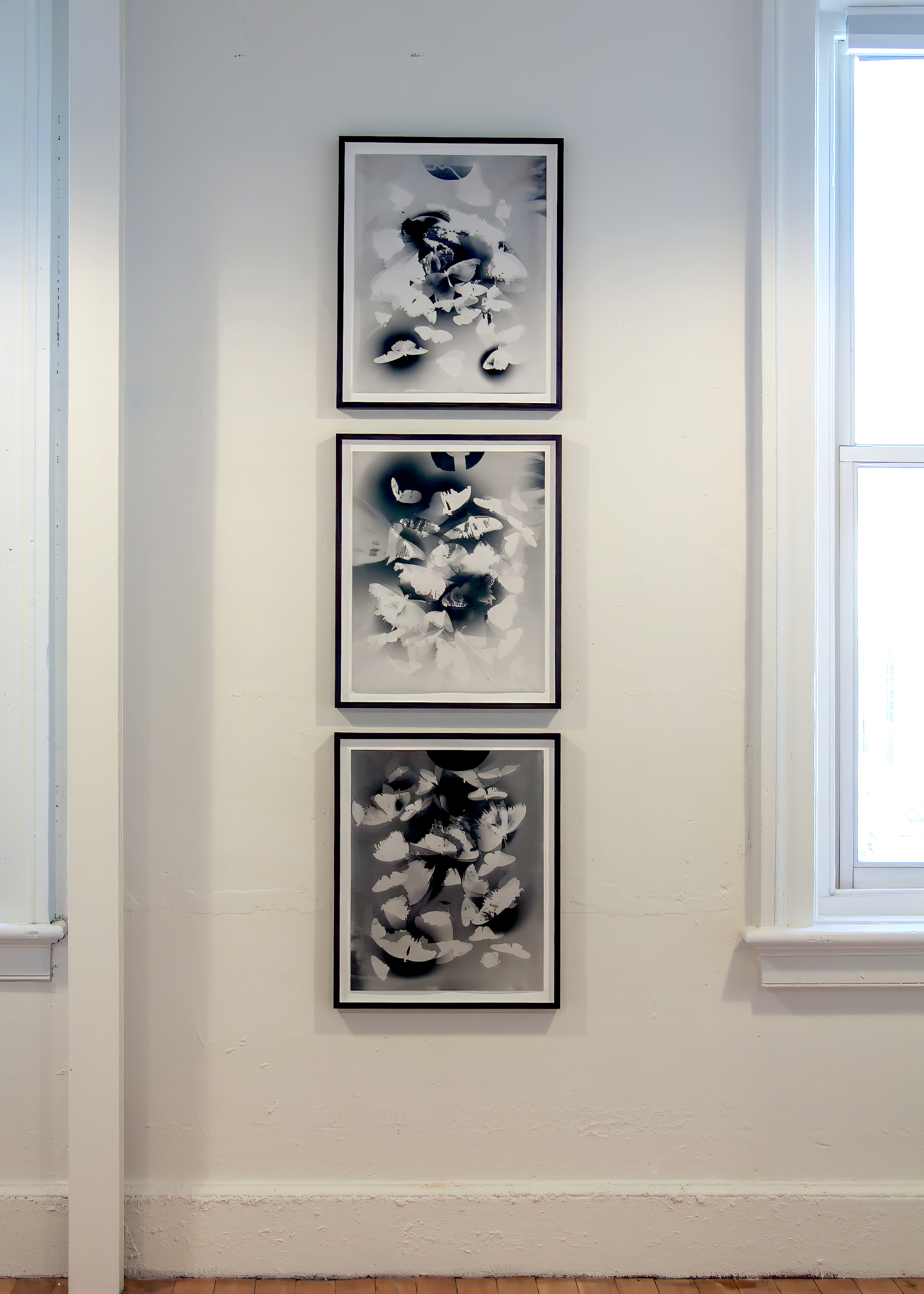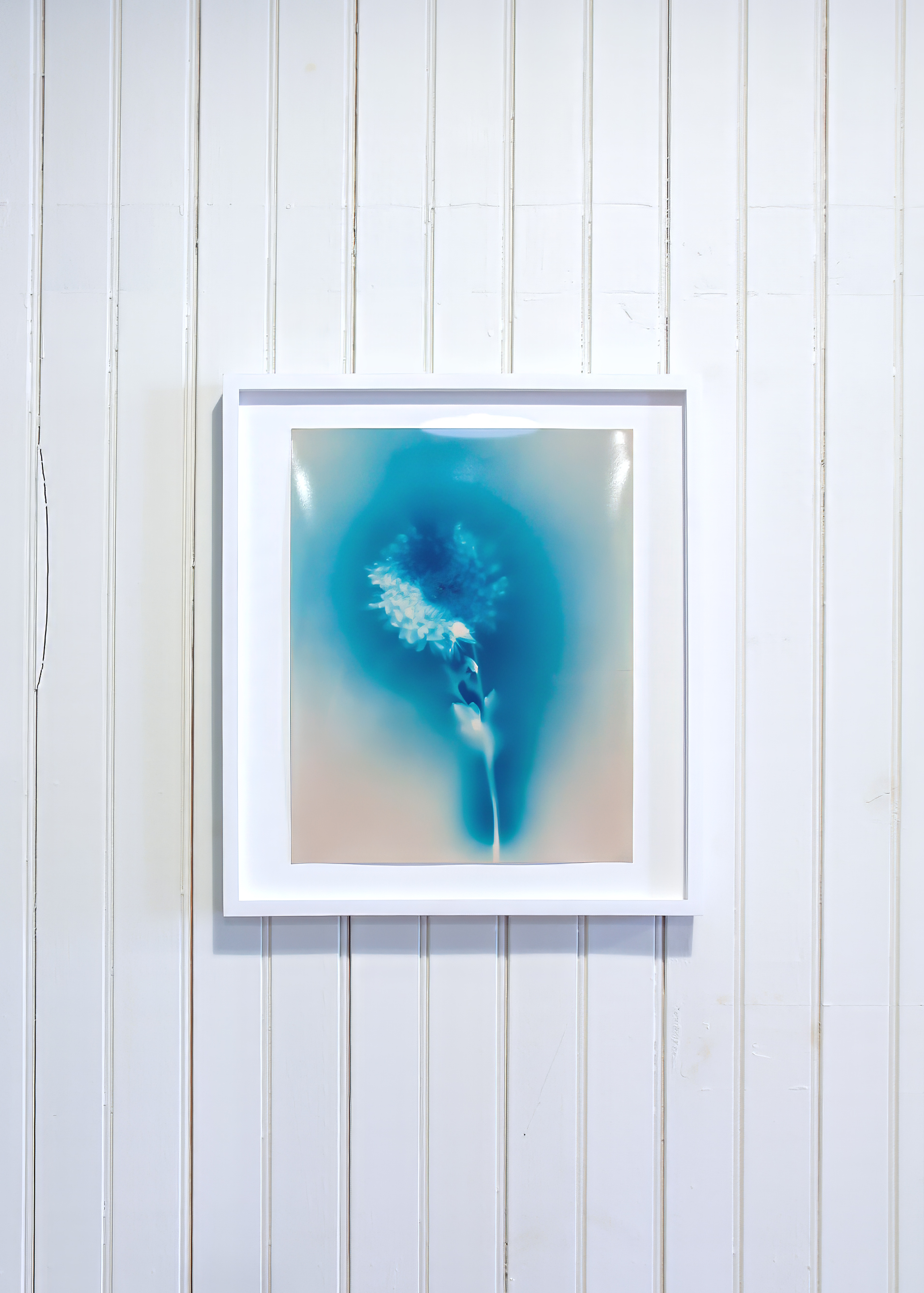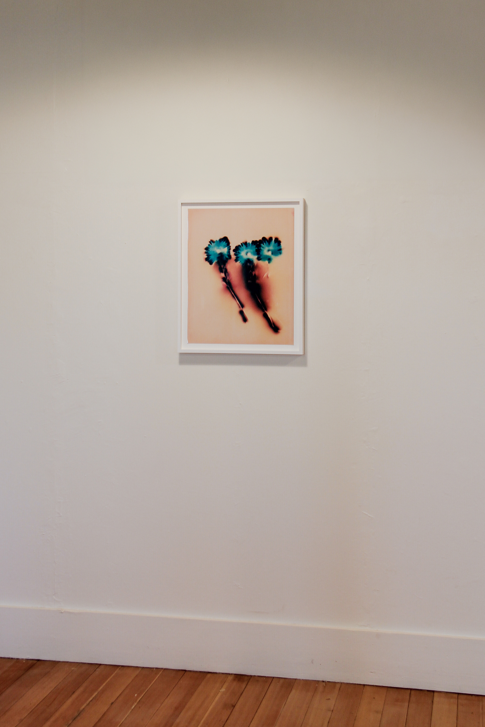 Frazier’s current work is the result of pursuing the subliminal in the darkroom, where form is rendered so lightweight it becomes two-dimensional. This work carries a material and emotional density and permanence previously unavailable to the artist through her past sculptural work, which often focused on lightweight and ephemeral forms. This practice is doubly phenomenological: it is both a recording of everyday phenomena—the ephemerality of icicles, the blooming of an amaryllis, or the sudden breaking of an object—and a direct, alternative engagement with the physics and chemistry that comes with cameraless photography. These subjects are not arbitrary; they are specific markers of time and season, reflecting a rigorous ponderance and culling of her surroundings. Each piece functions as a way of recording an event, capturing a specific moment of contact through a process that bypasses a lens entirely.